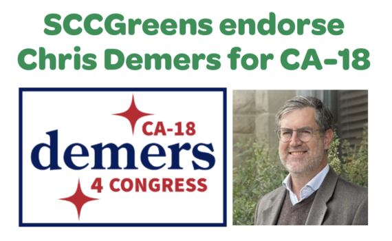 The Green Party of Santa Clara County has endorsed Chris Demers for Congress in CA District 18.
